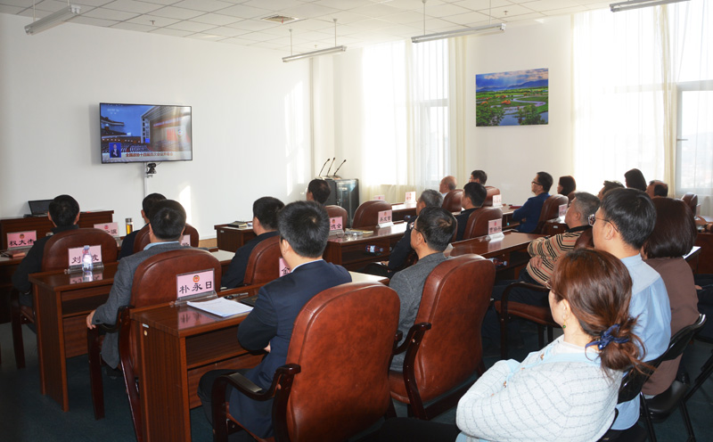 3月4日下午,全国政协十四届四次会议在北京开幕。州政协组织机关干部集中收看全国政协十四届四次会议开幕会盛况。州政协主席周金星,副主席马云骥、李中庆、权大杰、全京鲁与政协机关干部一同收看。